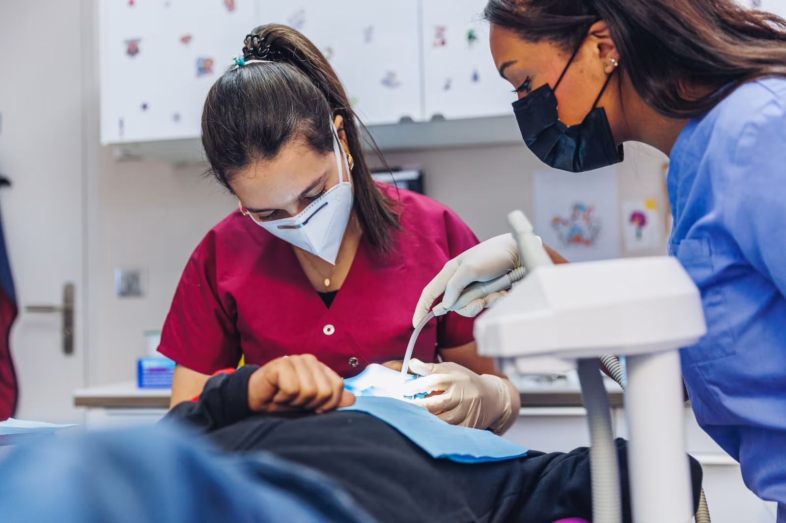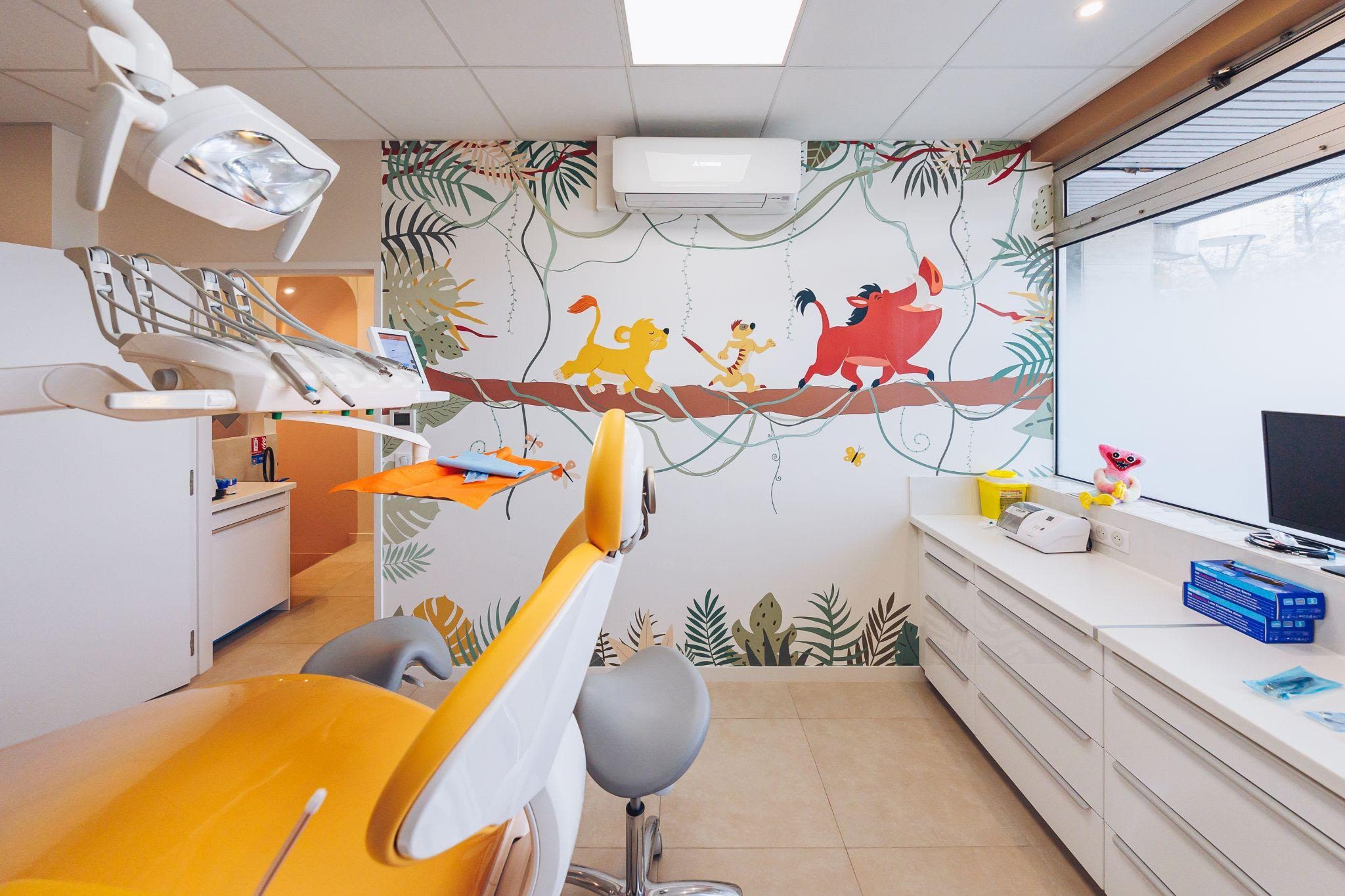 Composé de quatre cabinets spécialisés, notre service de pédodontie est conçu pour offrir la meilleure expérience à nos patients enfants. Trois de ces cabinets sont équipés de MEOPA et de télévisions au plafond pour assurer la distraction de nos patients. Nos pédodontistes qualifié(e)s, encadré(e)s par une référente, réalisent tous les soins pédiatriques, y compris les interventions complexes et les soins d'interception. Pour certains cas, nous avons, grâce à un partenariat, la possibilité de proposer des soins sous anesthésie générale.