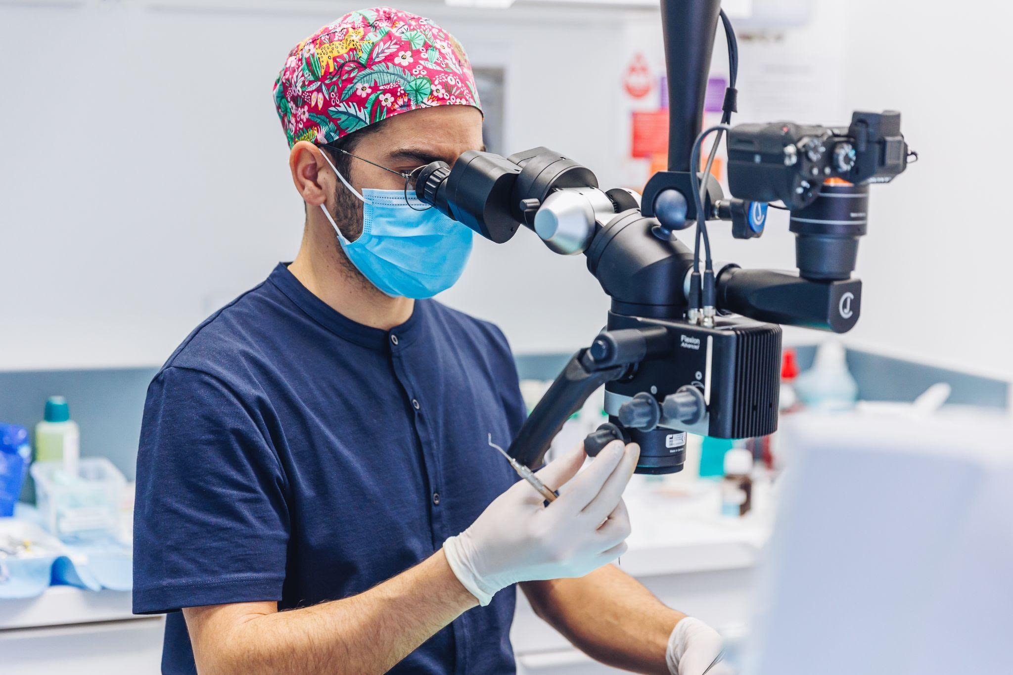 Avec ces trois microscopes opératoires et ses CBCT, notre service d'endodontie dirigé par un référent spécialisé peut prendre en charge l'ensemble des traitements d'endodontie : retraitement, chirurgie à rétro et ce, dans les meilleures conditions en suivant les dernières recommandations.